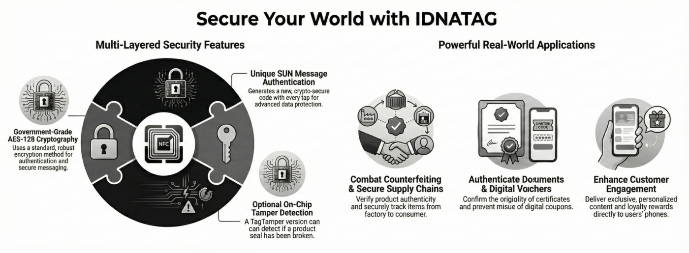 Securely authenticate your products at every stage—from raw material sourcing and manufacturing to distribution and final brand protection. Utilize access-protected memory to ensure only authorized personnel can read sensitive production logs, record payment incidents, or update product-specific data.